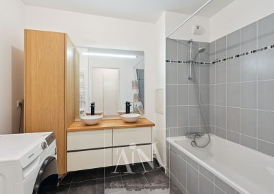 Situé au 3ème étage, l'appartement se compose d'une entrée fonctionnelle avec ses rangements, d'un WC séparé et d'une grande salle de bain. Le séjour, et sa cuisine contemporaine, qui restera équipée, forment un ensemble de 28 m2 propice à l'échange. La pièce de vie qui donne directement sur la terrasse, vous permettra de profiter de l'extérieur (repas, télétravail). Pour terminer nous trouvons 2 chambres respectivement de 12 et 9,50 m2. La dimension de la terrasse de plus de 15 m2 donne vue sur les espaces verts dont un jardin partagé sur une dalle végétalisée. Il n'y a aucun travaux à prévoir. Les charges sont très raisonnables. N'oublions pas que vous disposerez d'une place de parking en sous-sol.
