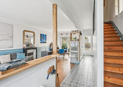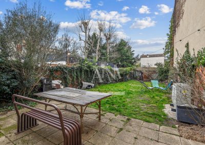 ALERTE PEPITE ! L'agence Immobilière des Musiciens est ravie de vous présenter cette maison des années 1920 qui a su garder toute son authenticité dans laquelle vous profiterez du calme « comme à la campagne » sans aucun vis-à-vis à 10 mn à pied du Centre-Ville, 8 mn du RER A Nanterre ville dans le très réputé quartier des Musiciens. Nous avons un jardin avant fleuri et un jardin arrière de plus de 160 m2 bien rectangulaire. Vous profiterez d'un double séjour de plus de 32 m2 traversant, avec accès direct à la terrasse puis au jardin où il est bon de siroter un verre, prendre un repas entre amis, jouer au ballon, à l'abri des regards. Son exposition vous permet de profiter du soleil toute la journée. Au premier rdc surélevé vous trouverez le séjour avec sa cuisine ouverte. Au premier étage 2 chambres, une salle de bains, des wc. Au 2ème étage les combles aménagés qui seront une chambre, un bureau, une pièce de jeu avec une partie dressing, de nombreux rangements et sa salle de douches attenante avec ses WC. En rez de jardin, une chambre parfaite pour votre plus grand ou pour vous-mêmes avec accès au jardin, sa propre salle de bain et des wc. De plus vous disposerez d'une cave à vin, d'une buanderie et du stockage. La maison est équipée d'une pompe à chaleur et de panneaux solaires pour vous procurer un confort optimal. Les chambres sont d'une surface allant de 11 à 19 m2. Nous pouvons garer des 2 roues, des 2 roues motorisées mais pas de véhicule : vous vous garerez facilement dans le quartier.Les atouts de cette maison : proximité immédiate de tout, un quartier pavillonnaire très calme, un environnement sécurisé, des moments festifs à partager sans modération.. Elle vous attend avec impatience pour démarrer une nouvelle histoire.120