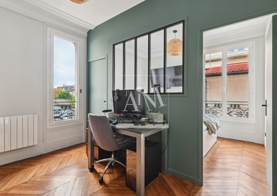 Situé dans un immeuble de caractère dont les parties communes et la toiture ont été entièrement refaites en 2023, cet appartement de 3-4 pièces offre un cadre de vie élégant et fonctionnel. Entièrement rénové avec goût et des matériaux de qualité, il dispose d'une belle entrée qui permet de préserver l'intimité de l'appartement et de séparer harmonieusement les espaces jour et nuit. La partie jour se compose d'une cuisine séparée et d'un grand salon bénéficiant d'une très belle hauteur sous plafond, de moulures d'époque et d'un parquet en chêne massif. La partie nuit offre deux chambres, dont une suite parentale avec salle de bain privative et un espace bureau séparé par une verrière, apportant à la fois luminosité et discrétion. Vous pourrez tout à fait recloisonner la partie bureau et créer une troisième chambre : tout a été prévu. Les volumes ont été parfaitement optimisés avec de grands placards intégrés, une buanderie fonctionnelle et des pièces d'eau carrelées au style contemporain. L'appartement bénéficie également d'une cave et d'une place de stationnement extérieure, des atouts rares dans le secteur. Idéalement situé, il se trouve à seulement 10 minutes à pied du centre-ville de Nanterre, de ses commerces et de la gare RER A, offrant ainsi un accès rapide à La Défense et à Paris. L'autoroute A86 est également à proximité immédiate, garantissant une excellente connectivité avec les grands axes de la région parisienne. Ce bien séduit par son alliance parfaite entre charme de l'ancien et prestations modernes, où le confort, la luminosité et la fonctionnalité se conjuguent avec élégance. Vous n'aurez plus qu'à poser vos valises.83,33