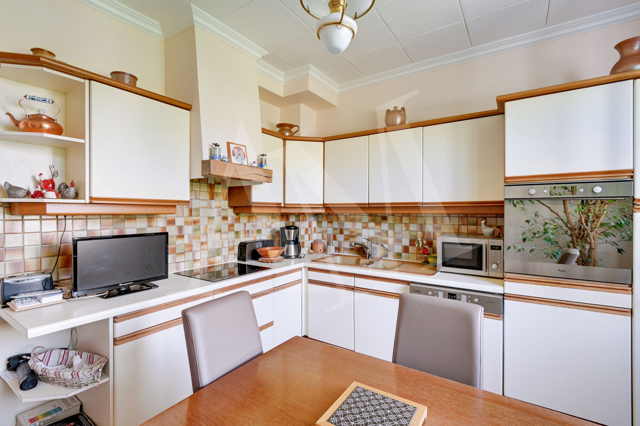 La maison même si elle n’est pas à votre goût, est en parfait état. L’électricité est récente, il y a du double vitrage partout, de jolis parquets en bois massif, des volants roulants électriques commandés. Le jardin est très mignon avec ses parterres entretenus et de belle taille avec 327 m²). Le terrain est de plus de 420 m².
