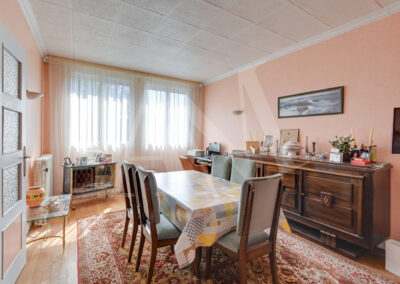Commençons par le rez-de-chaussée, il se compose d’une entrée (10,40 m²) , d’un séjour ( 21 m²) avec un escalier nous menant aux combles aménagés, une cuisine dinatoire 12,25 m²) qui pourra être ouverte sur le séjour. Entre le séjour, le couloir et la cuisine, vous obtiendrez un plateau de plus de 43 m².