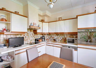 Nous redescendons au rez de jardin ou nous avons une cuisine d’été bien pratique pour les repas dans le jardin, une chambre de plus de 21 m². Attenant vous aurez un économat, un garage de plus de 25 m².